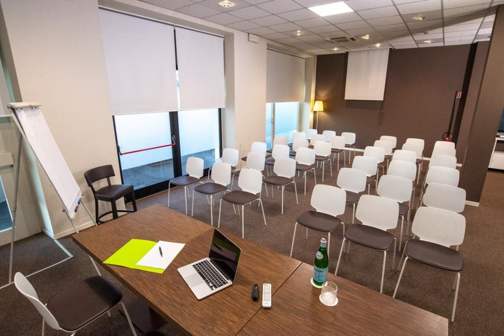 Siamo felici di ospitare i tuoi eventi di lavoro, meeting, corsi, riunioni, cene aziendali, all’interno di una delle nostre sale meeting. Te ne mettiamo a disposizione 3, così puoi scegliere la sala riunioni più adatta al tipo di evento aziendale che stai organizzando. Si parte dai 20 posti della sala Easy, si prosegue con i 40 della sala Enjoy, fino ad arrivare ai 70 posti della sala Easy Max, per gli eventi più grandi. Allestiremo la disposizione dei posti secondo le tue indicazioni. In ogni sala riunioni troverai tutta l’attrezzatura che ti occorre: TV al plasma da 50 pollici, telo per le proiezioni, wi-fi, lavagna a fogli mobili e videoproiettore.